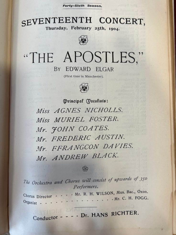 The first Manchester performance of The Apostles followed closely on from the Birmingham premiere, with Richter again conducting an orchestra and chorus of ‘upwards of 350 performers’ on February 25th, 1904.