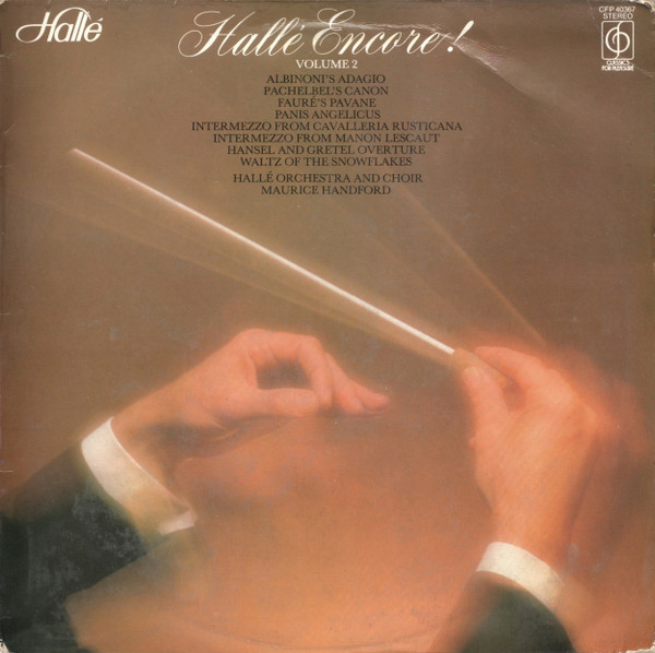 Maurice Handford was in charge for the choir’s next two recordings. As well as recording the big works in the repertoire, CfP also specialised in recording albums that brought together choice excerpts from the orchestral and choral repertoire, excerpts that often were popular owing their appearance as film or TV themes. Amongst these were the two Hallé Encore albums that Handford recorded with the Hallé Orchestra, the first in 1979 and the second in 1981. The first volume featured the orchestra alone, including such items as the Adagio from Khachaturian’s ballet score Spartacus, famous from its appearance as the title theme for the BBC’s primetime drama The Onedin Line, and also Samuel Barber’s Adagio for Strings, well known at the time but destined to become even more familiar when it appeared in Oliver Stone’s Vietnam war film Platoon in 1986.