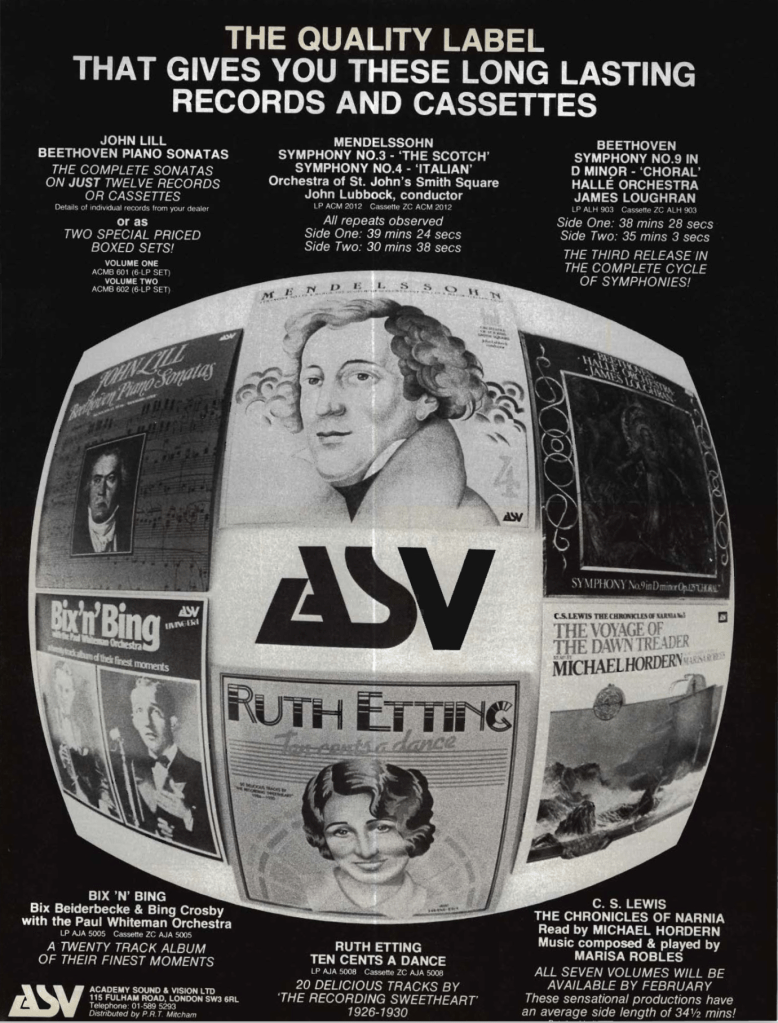 Advertisement for Much Loved Music in the Gramophone, December 1984