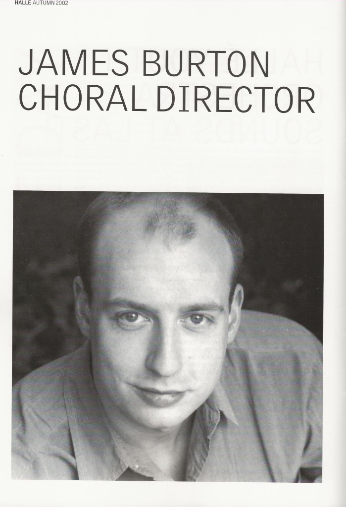 However, Keith Orrell would not be the person to take the choir forward into the bright new choral future envisioned, as for the beginning of the 2002/03 season he was replaced as Choral Director by James Burton, known to all and sundry from then on as Jamie. He came to the Hallé Choir with an interesting pedigree. After time as a Westminster Abbey chorister and at St John’s College, Cambridge where he first began conducting, he moved to America to pursue his conducting studies at the Peabody Conservatory. During his time in the States he also had a sideline writing symphonic arrangements for the music of Arlo Guthrie, son of the iconic American folk singer Woody Guthrie and perhaps more famous over here, at least to people of a certain age, as writer of the song ‘Alice’s Restaurant’ and writer of and actor in the subsequent feature film.