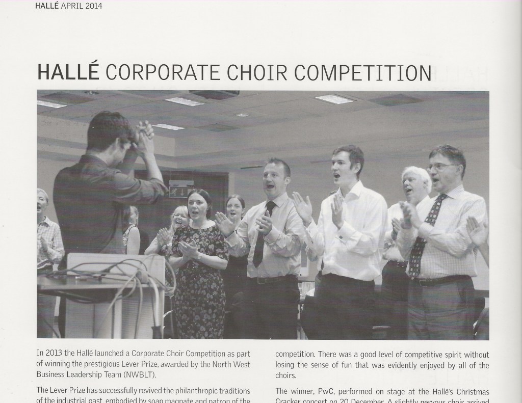 2013 saw the establishment of the Hallé Workplace Choirs scheme, whereby Hallé choral trainers went out to firms and institutions in Manchester and throughout the North West and trained choirs of work colleagues for a choir competition held each year in the newly opened Hallé St Peter’s building in Ancoats. This proved to be a huge success and the choir recently had a red letter day when the first singer trained through the scheme was admitted into the main Hallé Choir.