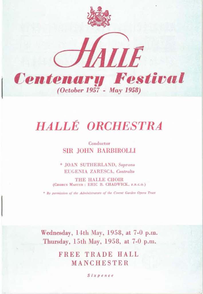 For the two performances the Hallé Choir were trained by Eric Chadwick and two soloists were engaged. I do not normally say a great deal about soloists within this blog but in this instance it is worth saying a little. The mezzo-soprano, who would sing the magnificent Urlicht movement, was the Ukrainian born Eugenia Zareska who had become renowned as a outstanding interpreter of Mahler following a performance of Lieder eines fahrenden Gesellen with the LSO in 1946. More significantly, Barbirolli engaged none other than Joan Sutherland to sing the soprano solo in the final movement.