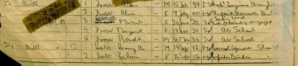 Whilst I have not been able to ascertain where they were all living when Ronnie was born, the snap census taken just after the outbreak of the Second World War in 1939 shows them living at 22 Deacon’s Crescent, a modest semi-detached house in Tottington, a suburb to the north west of Bury city centre.